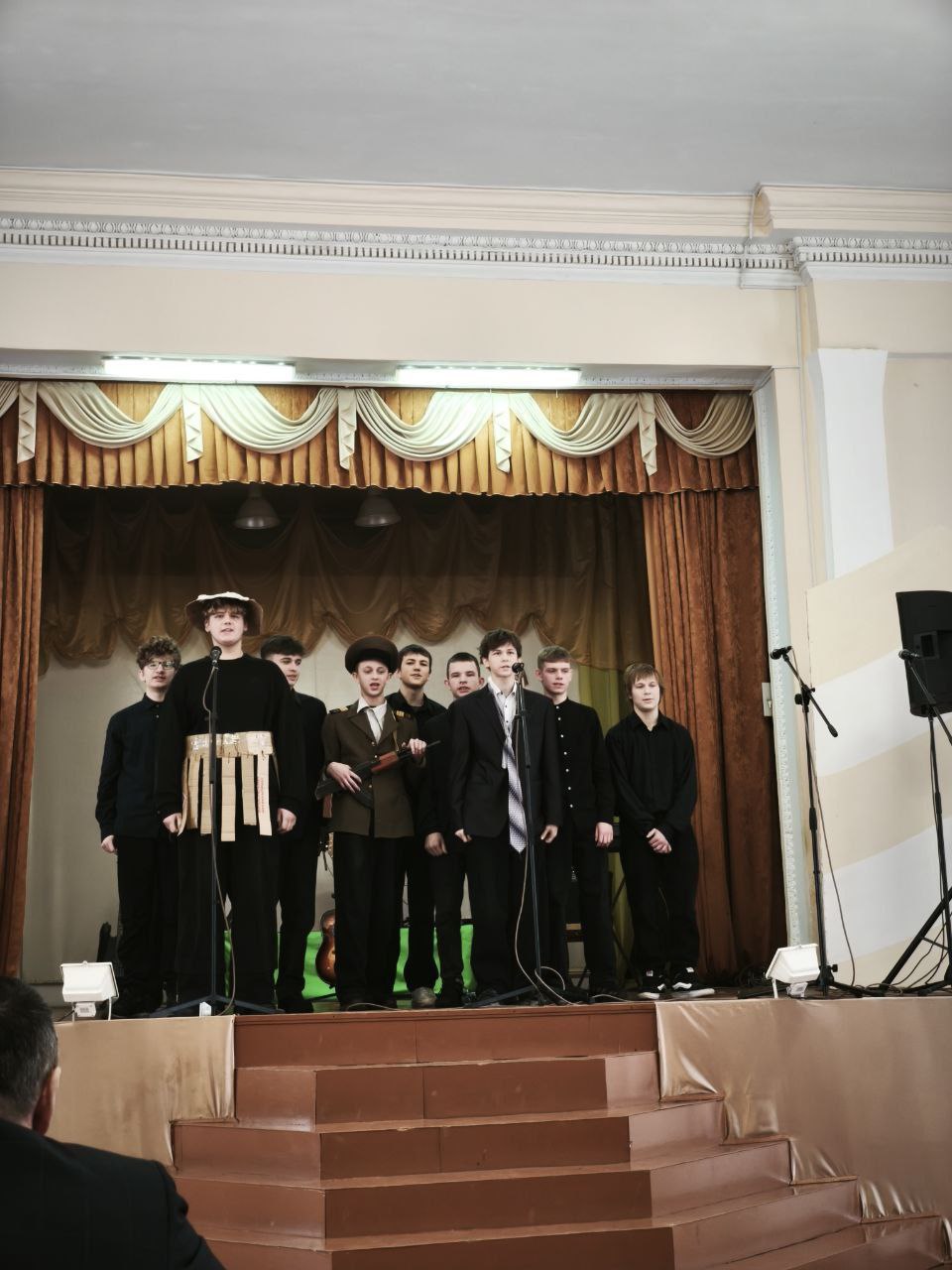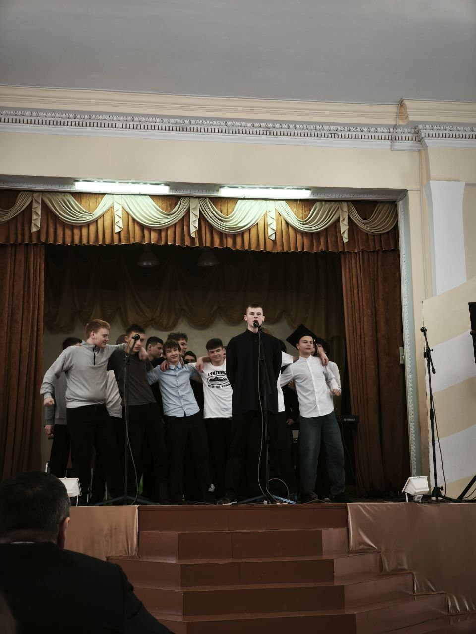 Наше жюри, возглавляемое директором колледжа Николаем Борисовичем Адашкевичем, оценивало выступления по пятибалльной системе. Были предусмотрены призовые места и специальные номинации: «Самый артистичный первокурсник» и «Приз зрительских симпатий».