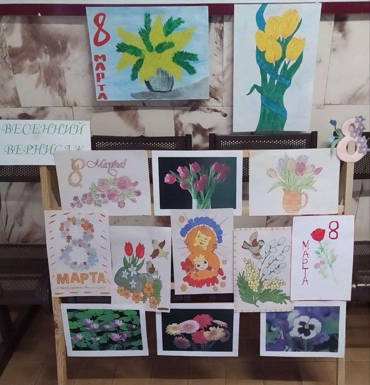 Кроме того, ребята порадовали выставкой рисунков «Весенний вернисаж». 🌸🎨 Работы наших талантливых учащихся вдохновили всех на позитив и радость, а яркие цвета и весенние мотивы создали атмосферу настоящего праздника.