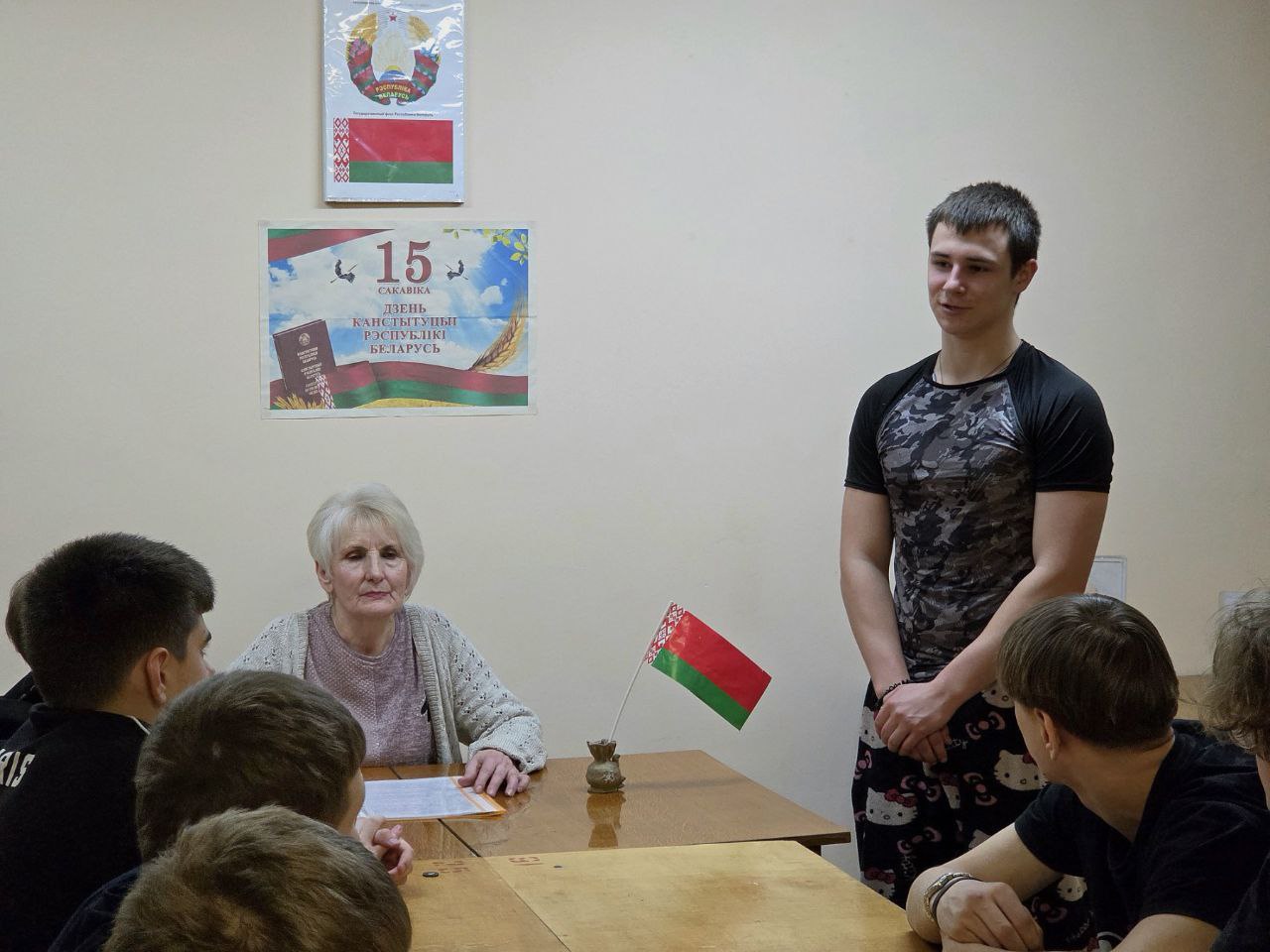 Вчера в нашем общежитии прошел информационный час, посвященный воспитанию правовой культуры, гражданственности и патриотизма среди учащихся. Тема встречи — «Конституция Республики Беларусь: Основной Закон Республики Беларусь».